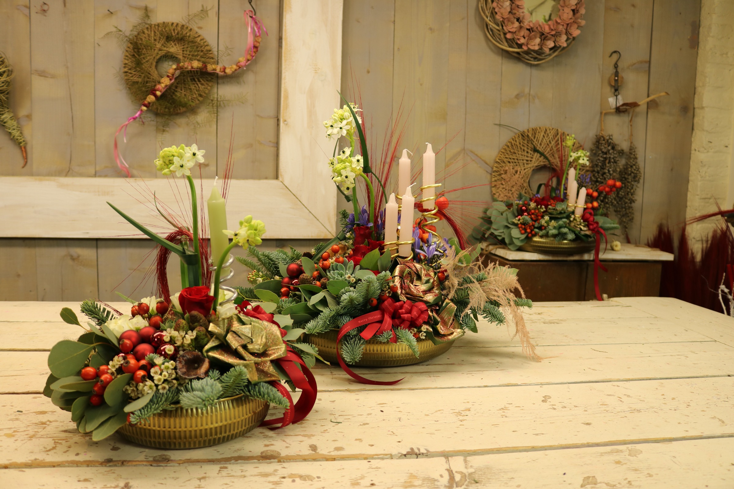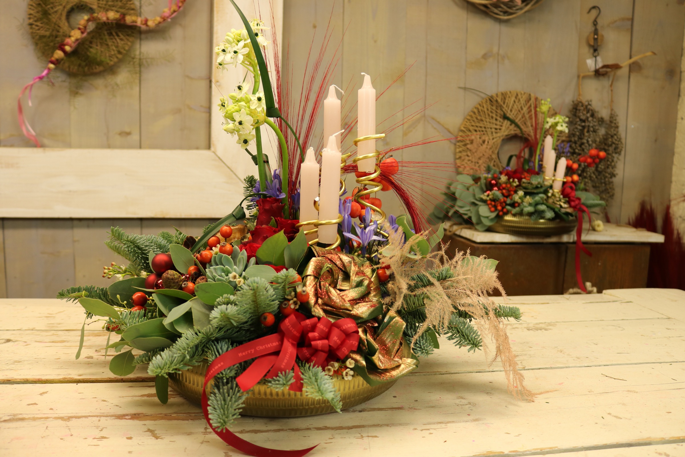 In deze video leg ik je uit hoe je dit zelf kunt maken. Het is een elegant stuk met prachtige verse bloemen erin verwerkt. De kleuren zijn verrassend alsook de bloemen die we zelf gaan maken. Er wordt je ook geleerd hoe je zelf een kandelaar maakt. De kleuren van de gebruikte materialen passen perfect bij elkaar. En als kers op de taart natuurlijk ook een mooie zelfgemaakte rode strik, want een prachtige rode strik hoort zeker bij kerst.