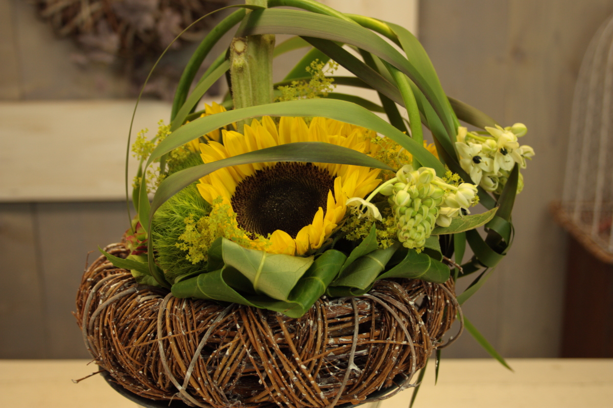 Zo kun je met behulp van de instructievideo zelf een zomers bloemstuk maken met een mooie zonnebloem erin verwerkt.