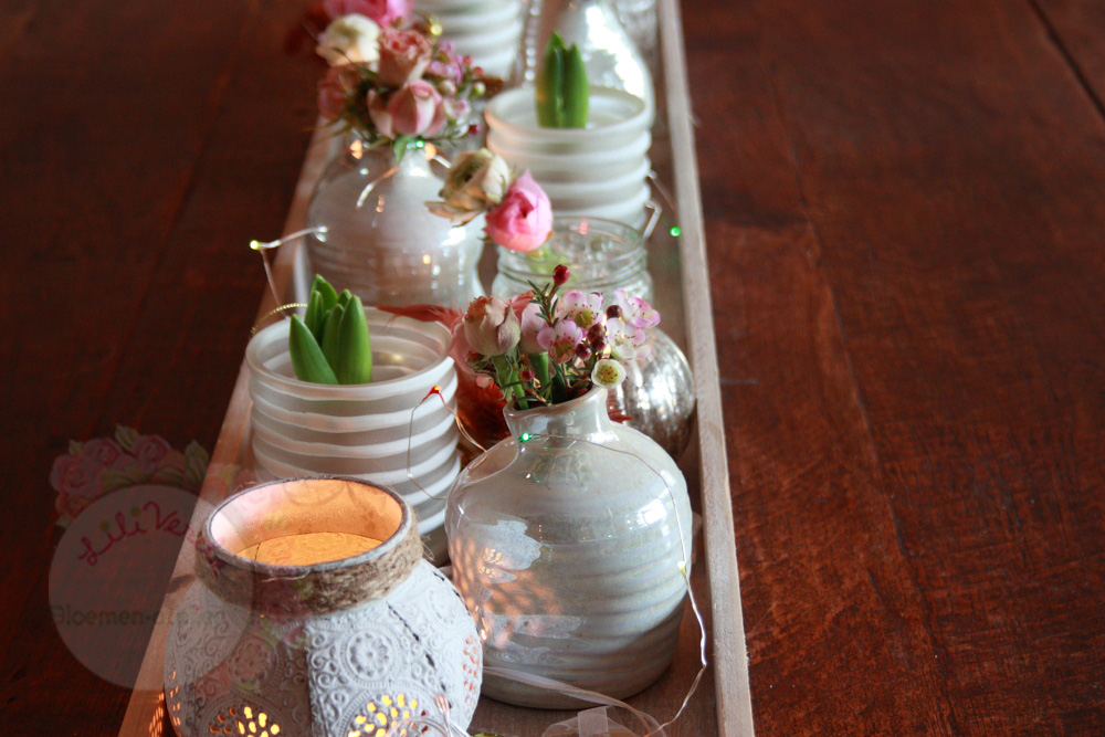In deze workshop maken we een eenvoudig tafelstuk dat handig van de tafel kan worden genomen indien dit nodig is. Je ziet dat je met relatief simpele spullen al een hele mooie decoratie kunt maken.