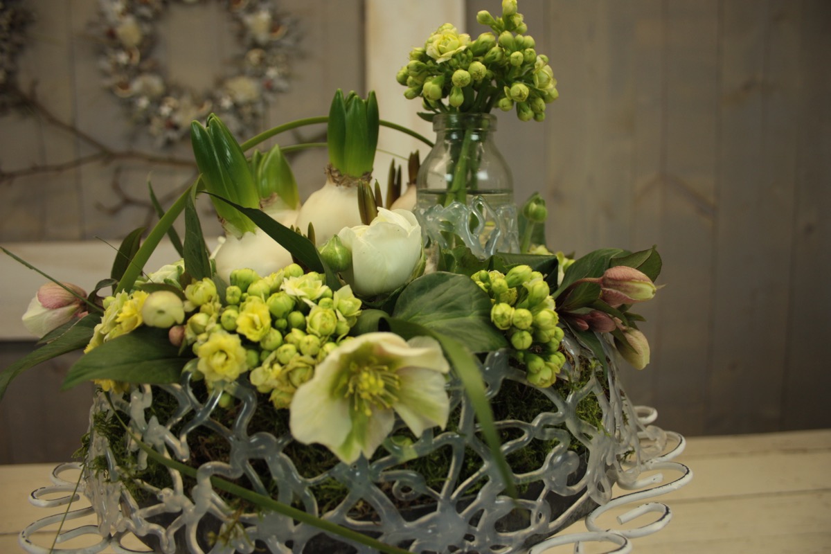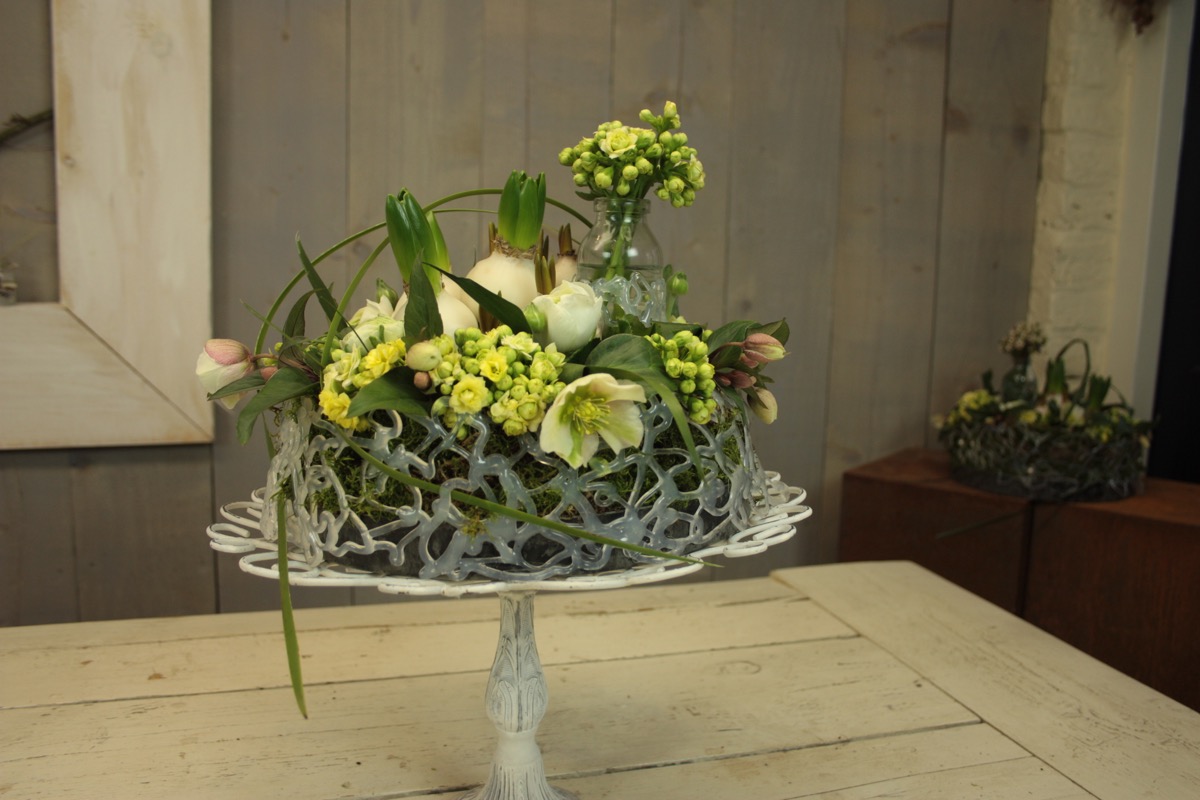 Zelf een heel mooi en apart voorjaarsstuk maken, met een krakelee uiterlijk en mooie voorjaarsbloemen zoals de hyacint en witte druif?